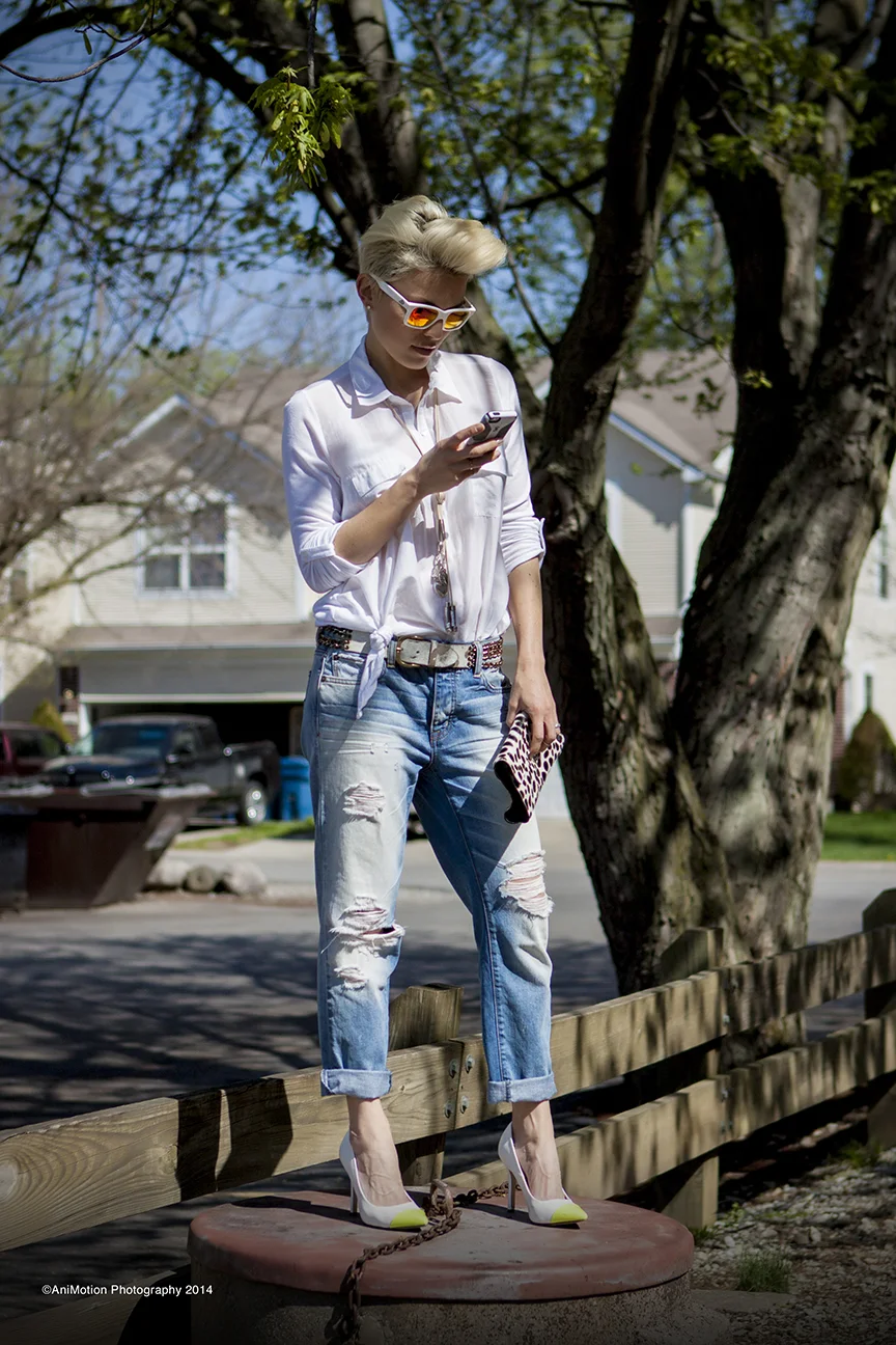 Shirt from William Rast/ Bag from Carolee / Shades from Gatorz Vizion/ Jeans from AE/ shoes from Mix No6/ belt from Streets Ahead/
